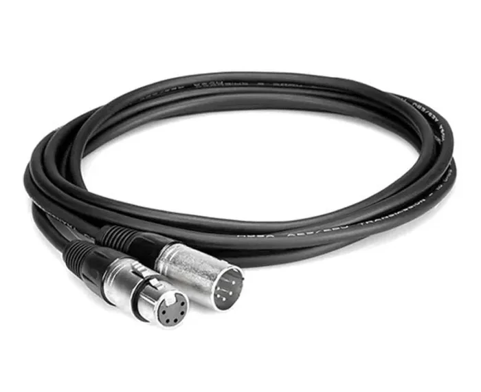 The Hosa DMX-525 is a 5-pin/3-conductor DMX Cable – 25 foot. is a 25′ (7.6 m) long extension cable ideal for use with sound and lighting control boards. Shielded, with durable connectors.