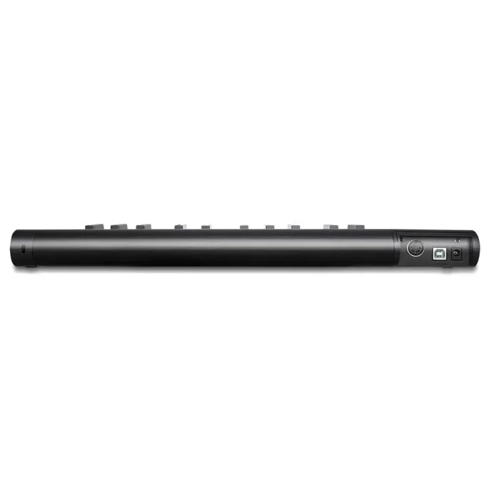 Velocity-sensitive piano style keyboard. Combined pitch/modulation joystick. Octave up/down buttons. Transpose up/down buttons. Sustain button. Arpeggiator button is equipped to activate Arpeggiator function. Combined Gate/Arp(type) joystick to adjust arpeggiator different parameters. Tap button is equipped to use with arpeggiator function. Multi velocity curves available for selection.