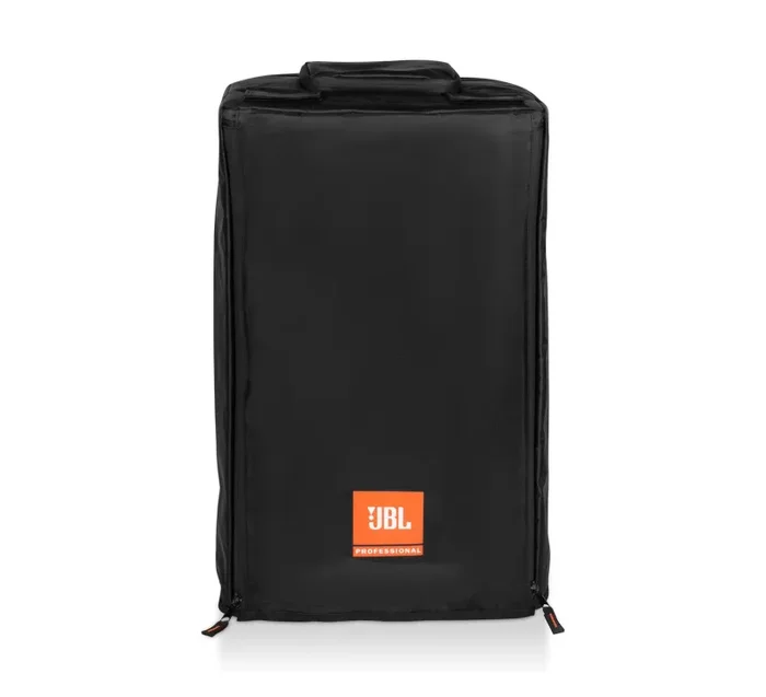 A top handle and speaker fly-mount cutouts allow you to deploy the speaker in less-than-ideal conditions, while two side-panel cutouts provide access to the built-in handles and feature touch-fastener closures. The front cover rolls up to expose a mesh speaker grille, and zippers down when not in use. The cover sports a JBL Professional logo on the front.