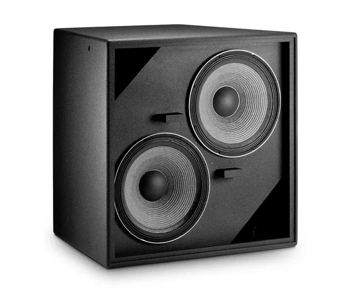 The JBL PD525S is a high power low frequency loudspeaker comprised of two 380 mm (15 in) Dual Coil – Dual Gap Differential Drive low frequency drivers in a front-loaded, vented configuration. The trapezoidal cabinet is fitted with M10 threaded suspension points.