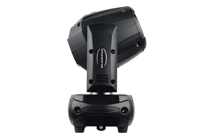 The JMAZ JZ3009 Attco Spot 100 is 75w LED Moving Head Spot with Prism, Color and Gobo Wheel. Light Source: 1 x 75W White LED. Long Life LED (Rated Over 50000 hours). 4 Operating Modes: Sound. Active, Show Mode, DMX Controlled and RF Remote Control. 9 Built-in Lighting Shows. 3-Facet Prism. Effect with Variable Speed and Direction. Motorized Focus from Near to Far (2.5M-30M). Scan Position Memory, Auto Reposition After Unexpected Movement. Includes Omega Bracket for Truss Mounting.