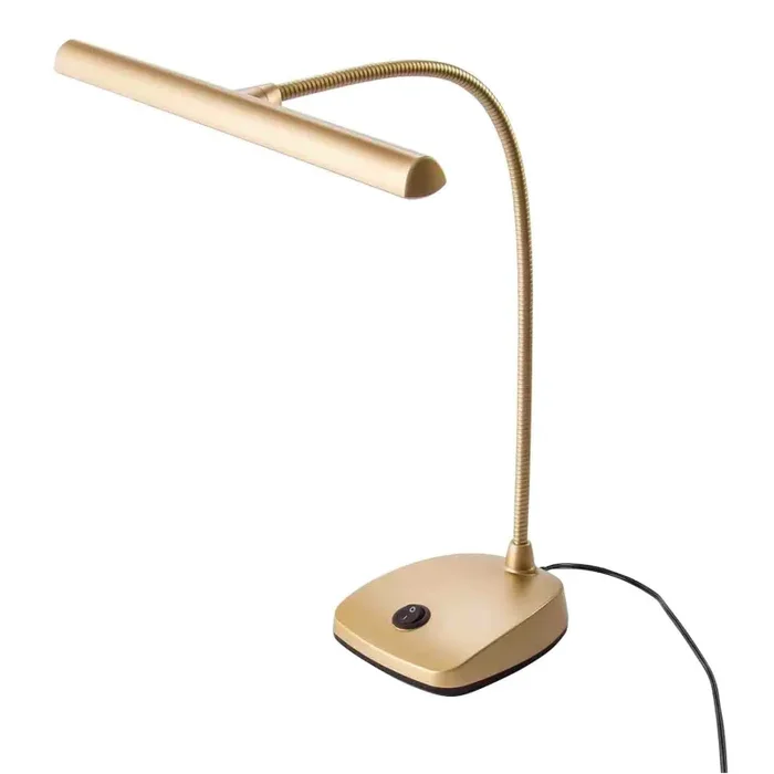 The K&M 12297 LED Piano Lamp – Gold-Colored is a 12-LED, 2500-lux, flexible gooseneck light designed to illuminate keyboards for applications for home, stage, rehearsals, and more. It features a heavy base to ensure stable positioning. The gooseneck is 16.4″ (41.7 cm) in length. This 12297 Piano Lamp’s LED technology provides long life and low energy consumption. An AC power adapter is also included.