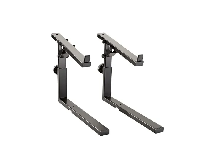 The K&M 18811 Stacker for 18810 Stand is ideal complement to keyboard stands »Omega-E« 18800, »Omega« 18810 and »Omega Pro« 18820 to use a second keyboard or laptop. Bigger master keyboards can be placed on the large lower support arms. The depth of the upper support arms can be adjusted to 4 positions, so the lower keyboard remains visible. The desired height of the stacker can be set easily and quickly using the spring-loaded clamping knob. 10 different heights allow each user to be able to find a position that best suits his/her needs. To optimize the position the upper support arms can be adjusted in 5 steps from 0° (horizontal) to a 20° angle. Self-adhesive rubber pads ensure that the instrument is not damaged and stays in place. The stacker is also the basis for an extension to a third level. By removing the back cover, the stacker 18822 can be inserted to take a third keyboard.