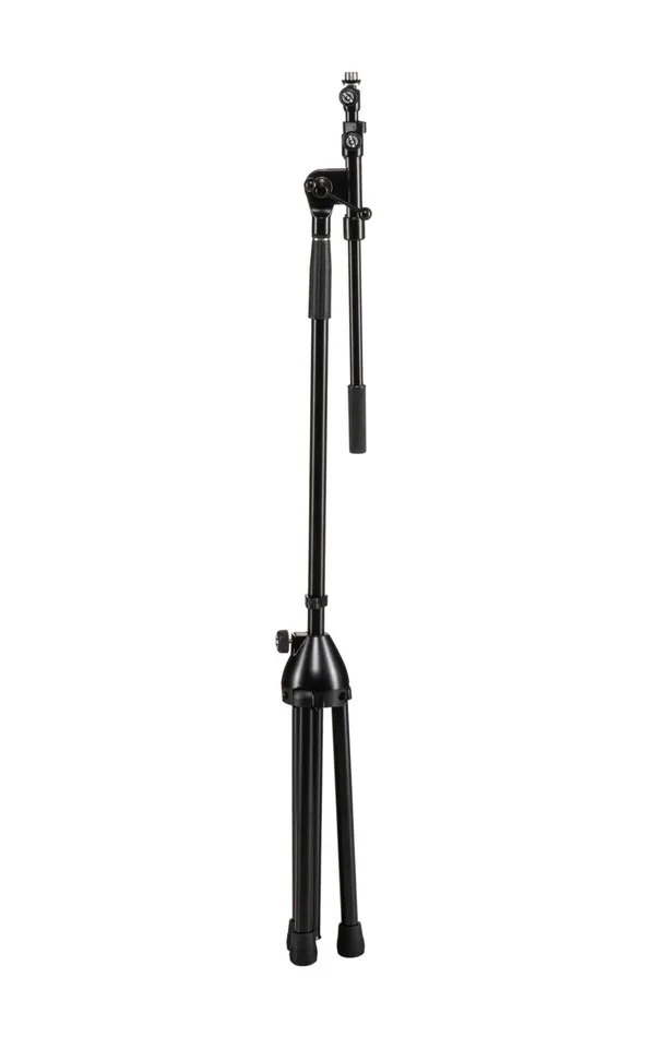 The K&M is a Telescoping Boom Microphone Stand in Black. height adjustable stand with a 17.1 to 29.3″ telescoping boom arm. The microphone stand offers sturdy support for live sound, theater, rehearsal, and recording applications. It features a clutch to allow you to raise the stand height from 35.4 to 63.2″ and a 5/8″ thread for mounting microphones (sold separately).