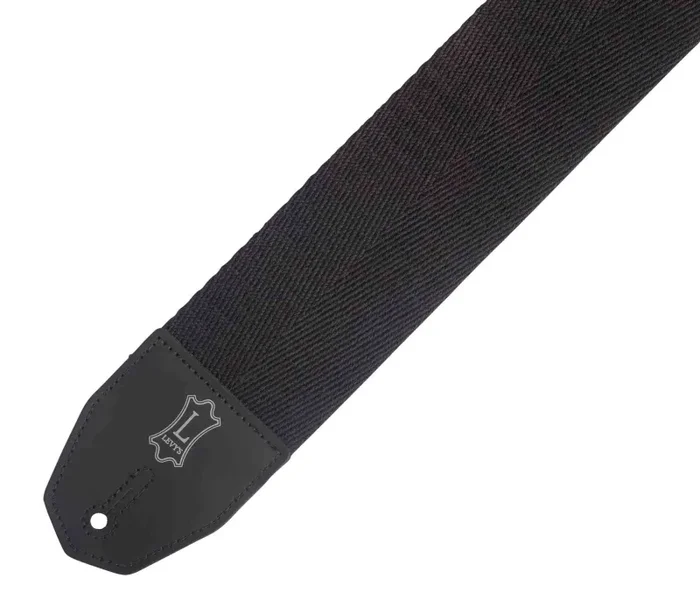The Levy’s MRHC4-BLK 3 inch Right Height Black Cotton Leather Guitar Strap Featuring RipChord Technology for Easy Adjust. Black Webbing and Leather with Polyester Webbing Adjustable From 43 to 57 inches.