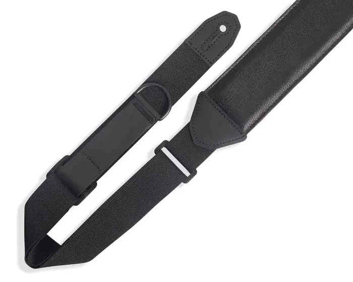 The Levy’s MRHGS-BLK 2.5 inch Right Height Garment Leather Guitar Strap Featuring RipChord Technology for Easy Adjust. Black Leather Upper with Padding and Suede Backing. Black Leather and Polyester Webbing Adjustable From 43 to 57 inches.