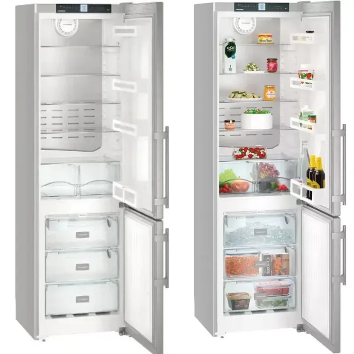 Liebherr CS1360B 24 Inch Counter Depth Bottom-Freezer Refrigerator with Factory-Installed Ice Maker, Stainless Back Wall, DuoCooling, Electronic Display, GlassLine Shelves, SmartSteel, SuperQuiet, SuperCool, SuperFrost, LED Lighting, 12.7 cu. ft. Capacity