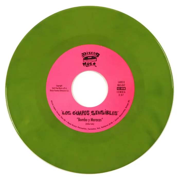 “This fine single from Los Guapos Sensibles gives a cumbia twist to the contemporary reggaeton hit ‘Gatita’. Prominently featuring the Meowsic cat keyboard on the melody and introducing La Alicia on vocals, this track is an instant winner on the dancefloor. The B-side brings a modern, moog-y, guitar driven version of ‘Bomba Y Maracas’ for the lovers of the classics.” – Discos Más