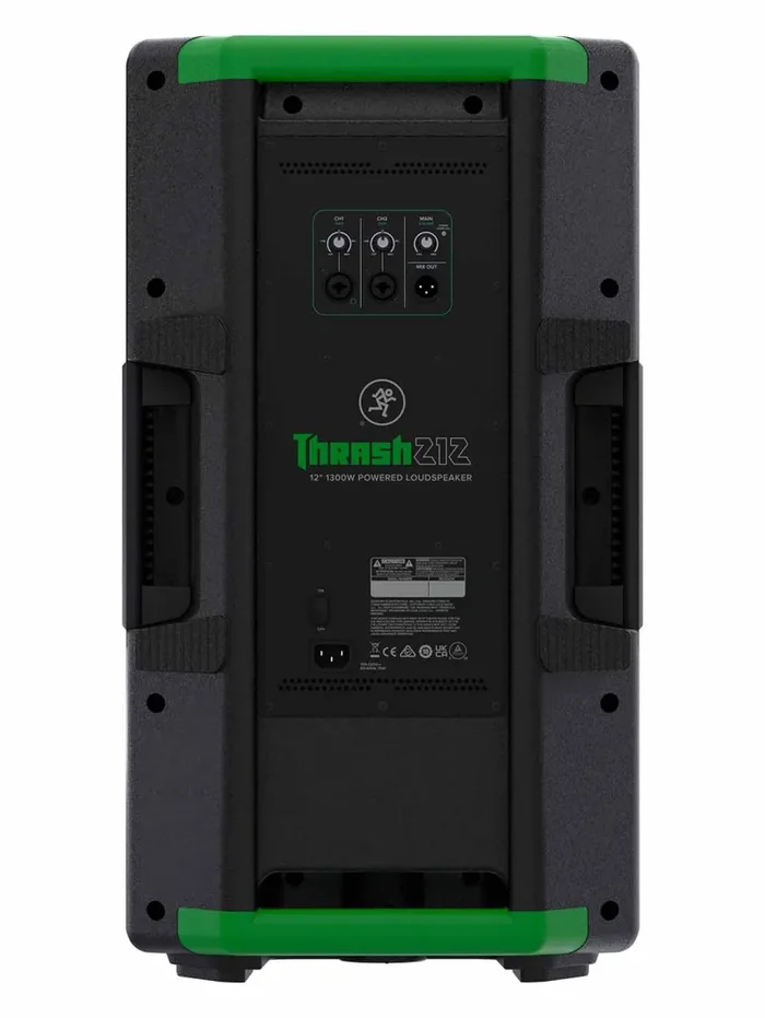 The Mackie Thrash 212 Speaker Package with Speaker Stand Pair. Thrash212 is a 2-way powered PA speaker that includes a 2-channel mixer, great for small club/band PA systems, singer/songwriters, boardrooms, A/V presentations, classrooms, or as a personal monitor for practice or performance.