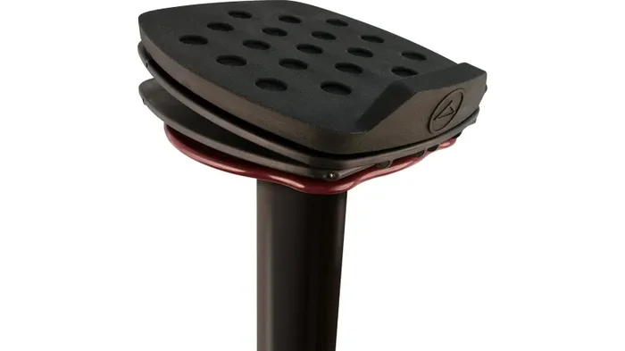The MS Series studio reference monitor stands from Ultimate Support offer unparalleled innovation and strength for professional, project, and home studios alike. The MS-100 is a 38″ tall monitor stand solution that provides surface decoupling via top mounted rubber decoupling pads and spiked, rubber covered feet. Three internal channels provide the option to pass cables through the base of the stand, while a larger internal channel allows you to add shot or sand for additional absorption and weight. The MS-100 series stands include MS-80 desktop stands, which provide a greater degree of vertical flexibility for positioning in your studio. The MS-100 is available in Red (MS-100R) and Black (MS-100B.)