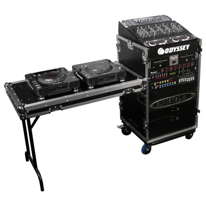 Odyssey FZ1116WDLX 11U Top Slanted 16U Vertical Pro Combo Rack with Side Table and Casters