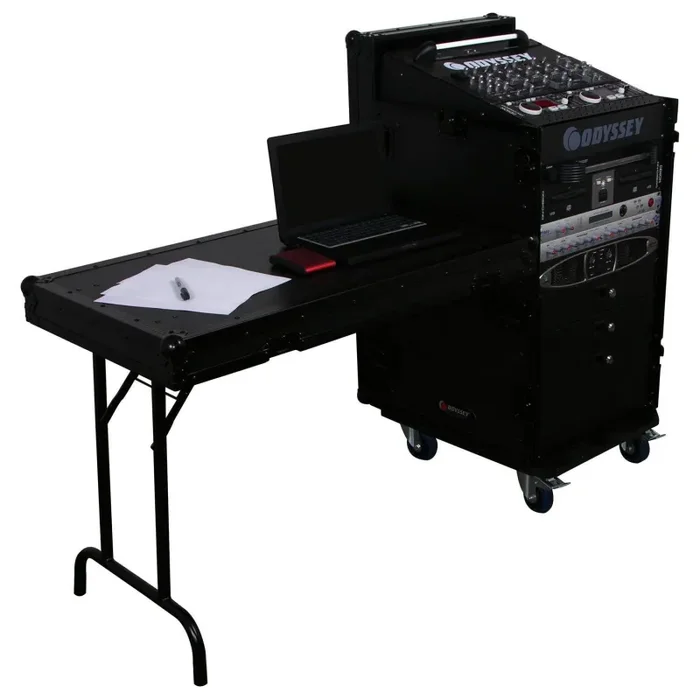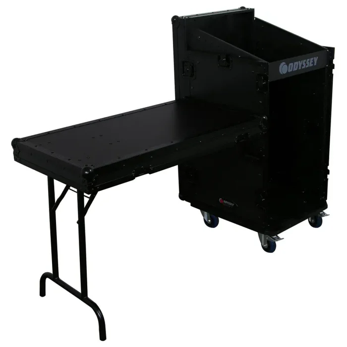 Odyssey FZ1116WDLXBL 11U Top Slanted 16U Vertical Pro Combo Rack with Side Table and Casters – Black