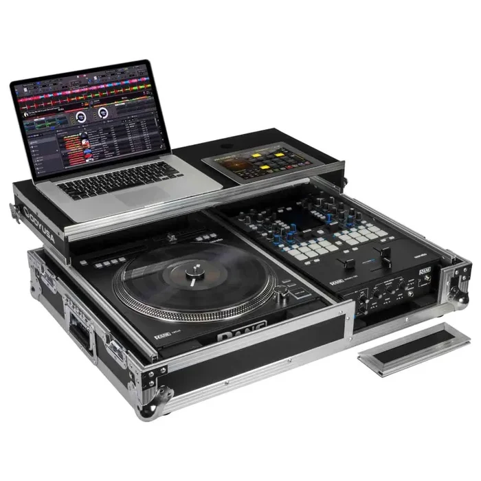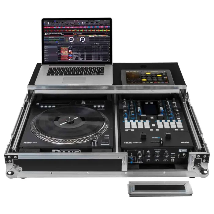 The FZGS1RA1272W Glide Style DJ Coffin holds one Rane 72 mixer and one Rane 12 Motorized Turntable controller. The unique design allows you to configure your setup as you choose with the mixer at the left or right side as preferred, and with its glide platform tension latch rail system you can add our optional Producer Series GSA angled add-on panels. Other features include rugged built-in roller wheels, recessed latches, and spring-loaded handles, heavy-duty ball corners, and front and rear mixer section access panels. Cabling is clean and easy with convenient access ports throughout the case.