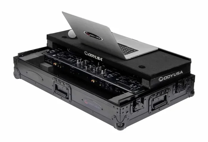 Odyssey FZGSDDJREV5CWBL, 1U Flight Case for DDJ-REV5 Controller with Glide Style Laptop Platform and Corner Wheels – Black Label