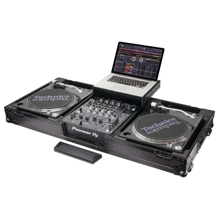 Odyssey FZGSLBM12WRBL Black Low Profile 12″ Format DJ Mixer and Two Battle Position Turntables Flight Coffin Case with Wheels and Glide Platform