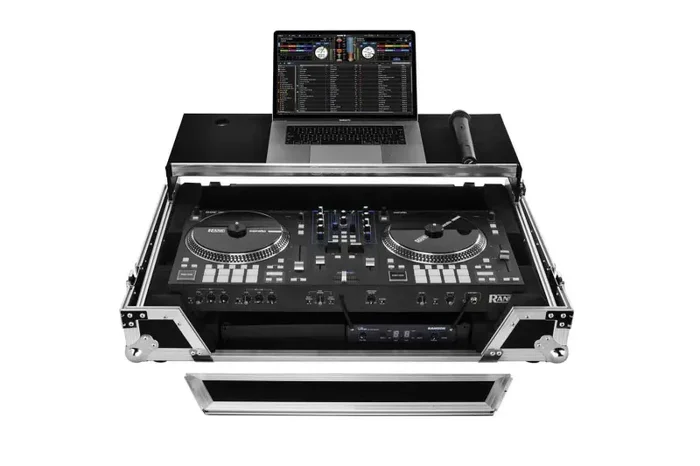 This case improves upon the Odyssey case by adding a 19″ 1U rack space underneath the controller compartment. The addition of the 1U rack space further organizes your gig gear such as the wireless mic system, the power strip, the drive rack, or the storage drawer into the case. If the rack space is not needed, the rack mounting hardware can be removed to make storage for your other essential gear.