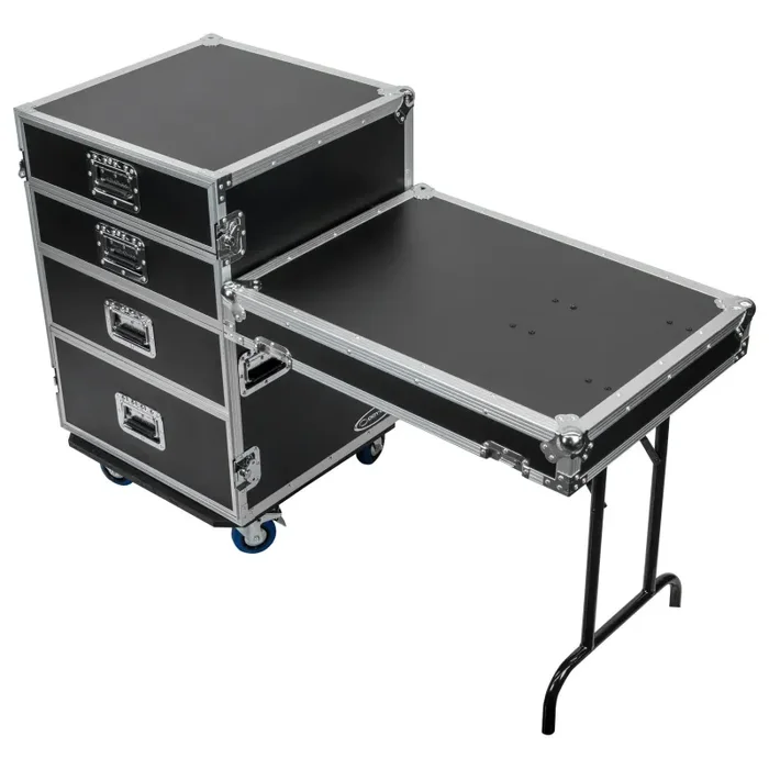 Odyssey FZWB4WDLX DJ Flight Case for Deluxe Four Drawer Workbox Tour with Casters And Side Table