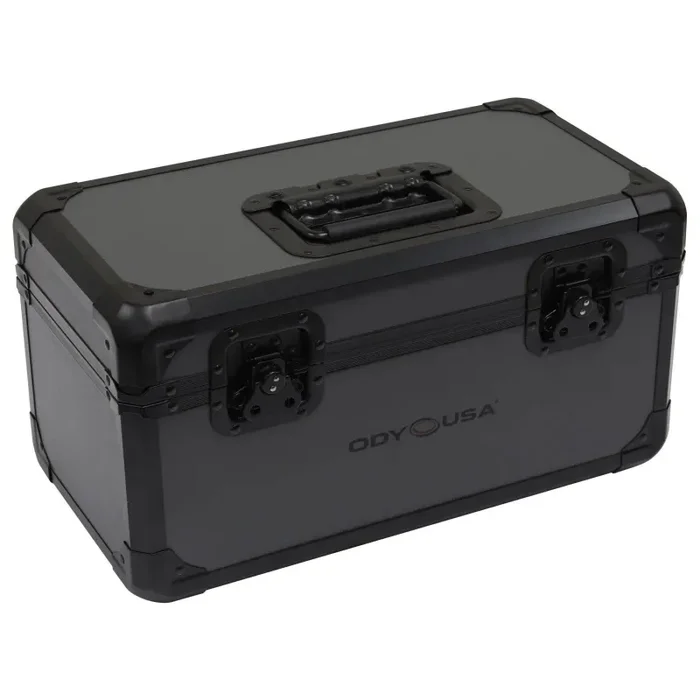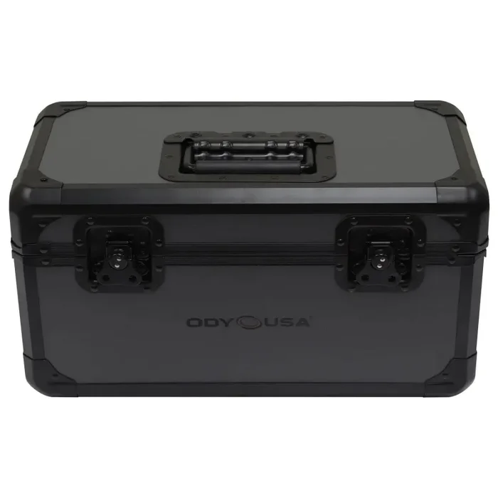 The Odyssey K45120BLG cases are made to the same standards as our original Krom series but with a twist. The hardware including the aluminum trim is coated a sleek Black. The steel corners are uniquely hexagon-shaped and each also features rubber feet for stacking multiple record cases a must for large 7 inches record collections of vinyl purists and DJs who are true to the art of turntablism. The K45120BLG has a fully foam-lined interior, heavy-duty recessed handle, and front latches with padlock loops. Black Krom cases slick stealthy and beyond cool
