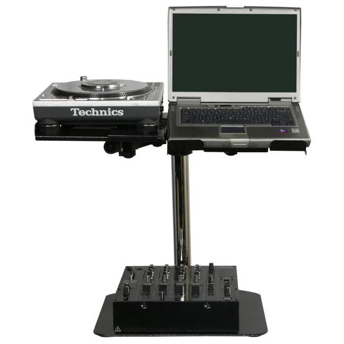 Elevate your laptop and pro audio gear in style with our new heavy-duty L-EVATION stands. This universal version has adjustable depth support for your laptops, most tabletop CD players, effects units, and other pro gears. Easy to assemble and customize with its adjustable height and strong robotic-like support arm. Have it set-up over your turntable, mixer, and other gears, giving you that extra cutting edge in your mixes with easy access to your mounted gear.