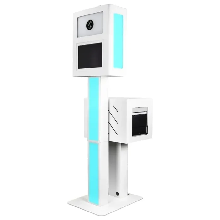 LED system that will definitely attract a crowd to your booth at any event. The impressive frame design comes in six parts that can be dissembled for easy transport and storage. Setup is easy with the multiple kiosk/printer stand configurations available to the user. It’s your choice of how you attach the components to the base. Position the printer stand to the rear or front of the Kiosk. You can also choose the direction of the posts’ LED panel arrangement.