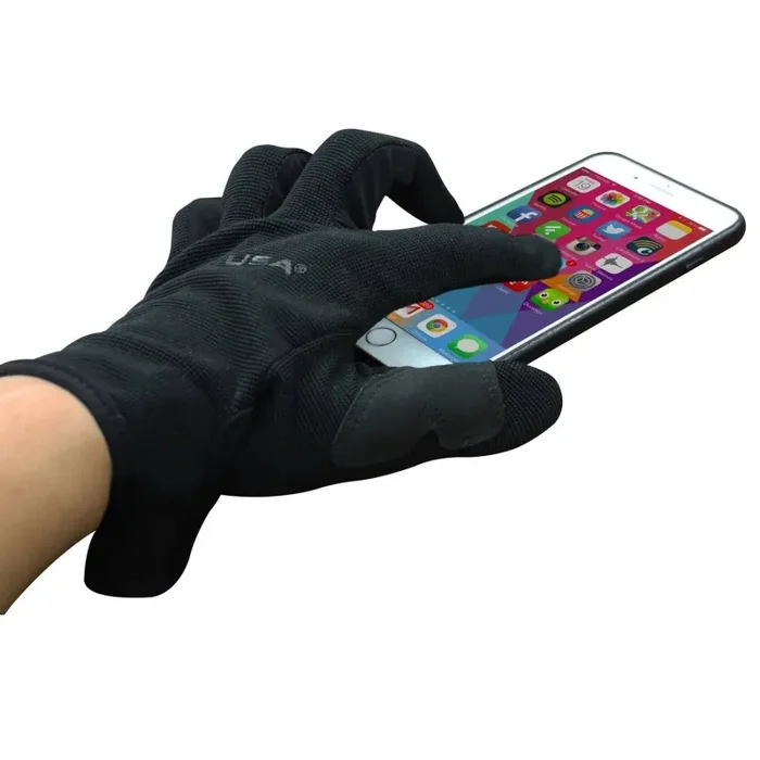 Odyssey Stage Krew gloves are a must have for working DJ, production crews, and riggers. Made of high quality flexible fabric, these special DJ gig wear accessories feature special conductive materials on the fingertips that allow you to use them with capacitive sense touch screen devices such as tablets and smart phones without needing to take them off, and they look cool too. Available in three sizes.