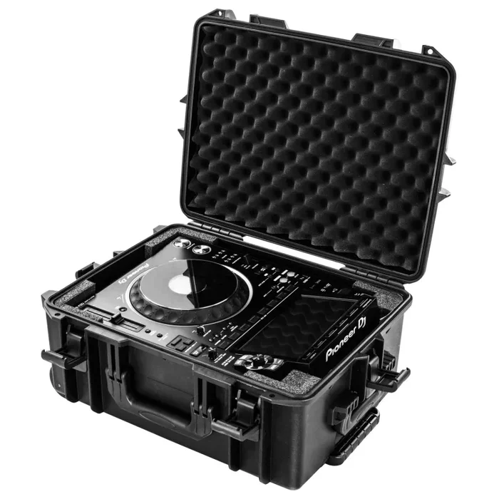 The Odyssey VUCDJ3000HW trolley case is watertight, dustproof, and impact resistant. The case is injection molded with a high strength polymer resin. The VUCDJ3000HW features a fully foamed interior as well as corner wheels and a pullout handle for transport convenience. The lid has a soft convoluted egg foam-lined interior with a custom fit bottom interior specifically made for the Pioneer CDJ-3000 professional DJ multiplayer.