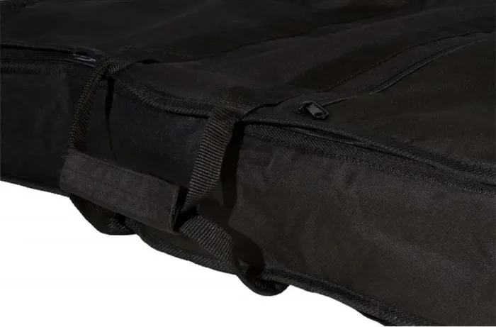 The On Stage GBA4550, Acoustic Guitar Gig Bag – Black delivers protection and ease of transportation for an acoustic guitar. The rugged, weather-resistant nylon exterior defends the instrument against dings and moisture while the smooth interior lining helps keep the finish looking fresh. An outer compartment with a zipper closure provides convenient access to supplies and tools. Two handles and removable adjustable backpack-style straps enable balanced, comfortable carrying.