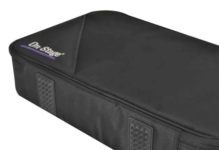 The On Stage GPB3000 Pedalboard with Gig Bag enables efficient, prewired set up and transportation for multiple effect pedals. The pedalboard securely holds up to 10 standard-size pedals and is angled toward a guitarist for comfortable viewing and operation. The pedal platform is conveniently slotted for tidy cable arrangement. Nonslip rubber feet keep gear safely in place on the floor. Plenty of adhesive hook-and-loop strips are included to cover the platform and pedals for proper mounting. For ease of carrying, the pedalboard also comes with a protective padded gig bag that features a removable shoulder strap and a top handle. The bag’s internal accessories pocket provides convenient access to supplies and tools.