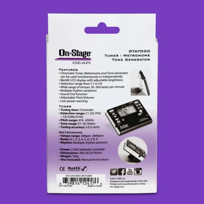 On Stage GTA7000, Chromatic Tuner, Metronome and Tone Generator