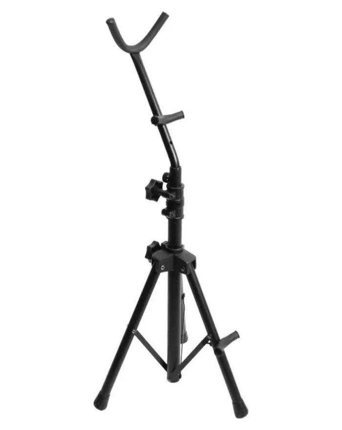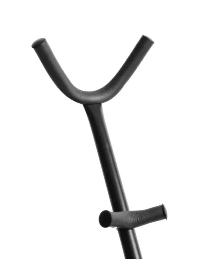 The On Stage SXS7401B Tall Alto/Tenor Saxophone Stand holds an alto or tenor sax at a height that can easily be reached without having to bend over. Two yokes securely hold a sax upright so it doesn’t lie on its keys or other delicate parts. The tilt-back angle of the yoke shaft provides weight balance that prevents tipping or falling. Padding at all contact points increases grip while protecting the sax’s finish and nonslip feet inhibit unwanted movement of the base. For convenient storage and transportation, the base folds down and detaches from the yoke shaft.
