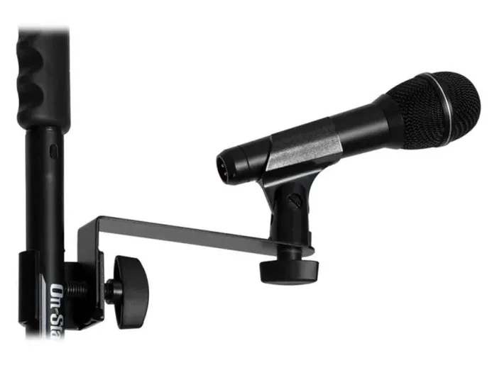 The OnStage MY550 Mic Extension Attachment Bar to add support for an additional mic without crowding the floor with an extra mic stand. This stable arm conveniently clamps to mic stand shafts, tabletops, or amp cabinets and holds your choice of mic clip or gooseneck.
