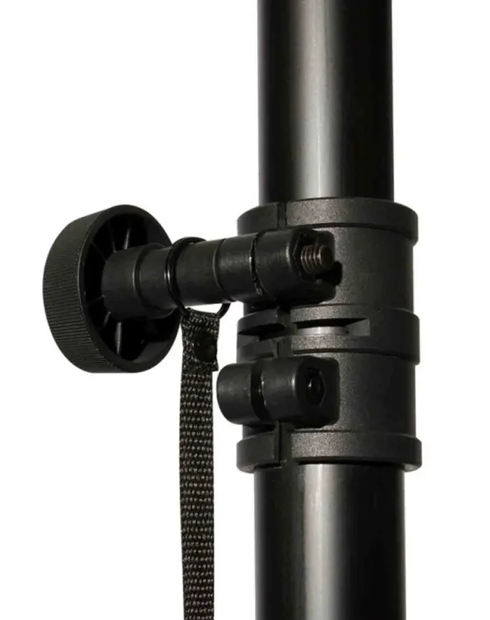 The Onstage SS7762B Speaker Stand with Adjustable Leveling Leg features an independently adjustable leg for leveling the base on uneven surfaces including stairs. The stand’s versatile reversible pole supports all standard speaker cabinet mounting sockets and the height adjusts to accommodate a variety of applications. Its heavy-duty construction, braced base, and nonslip feet work together to deliver exceptional stability and load balance even on irregular surfaces. The durable black finish preserves the professional appearance of any space. For convenient, compact storage and transportation, the tripod base folds flat.