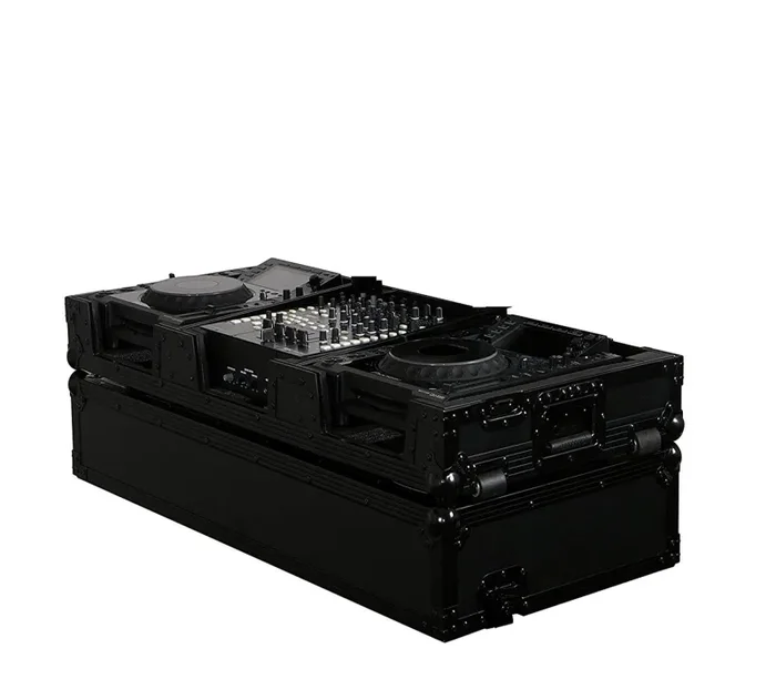 Open Box: Odyssey FZGS12CDJWBL 12″ Format DJ Mixer and Two Large Format Media Players Coffin Flight Case with Glide Platform – Black