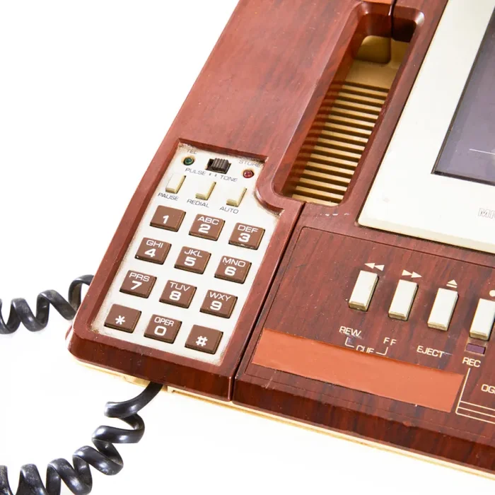 Details: Beige faux wood vintage telephone