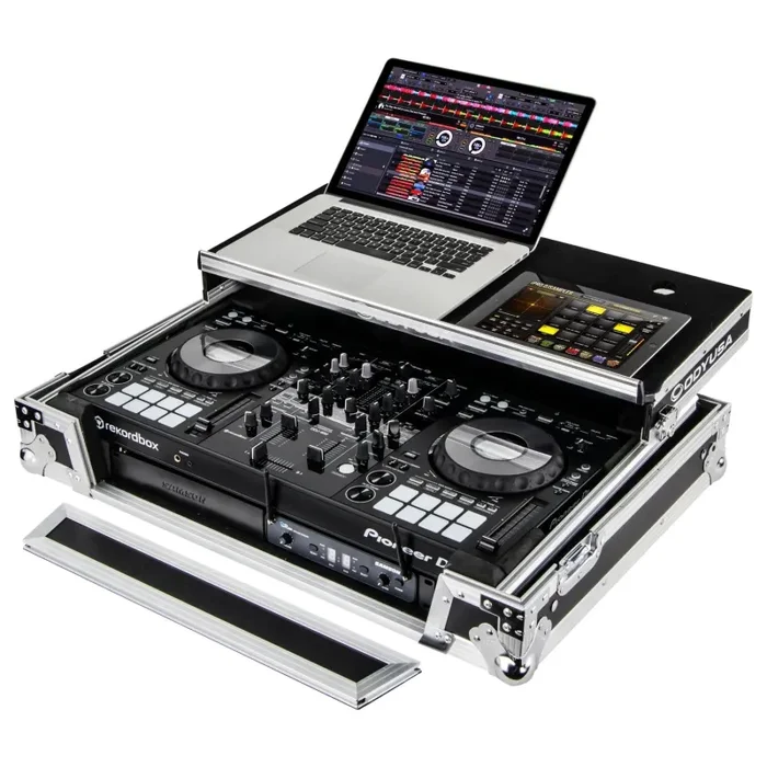 The Odyssey FZGSPIDDJ8001 Flight Zone case includes a removable V-cut front panel allowing access to all of the DJ controller front knob controls and input jack ports. It features our patented Glide Style platform perfect for positioning your laptop, tablet, effect processors, and other gear right where you want it over the Pioneer DDJ-800 rekordbox DJ controller.