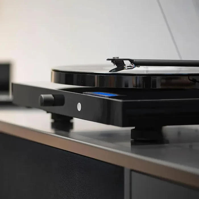 - 8.6″ aluminum tonearm w/ sapphire bearings