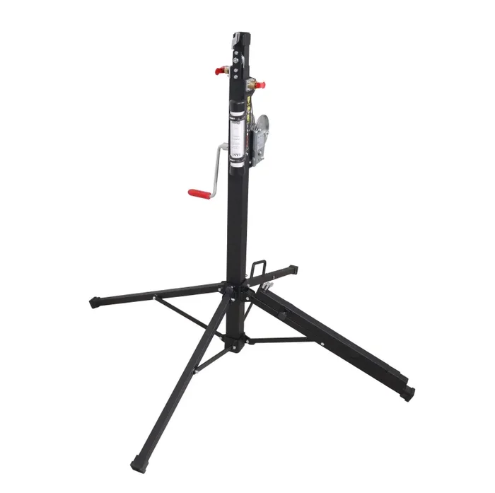 The Fantek T101 model telescopic lifting tower is a tower designed to lift loads vertically while allowing easy transport in a minimum space. It is composed of three extensible steel profiles elevated by a high-resistance steel cable guided by grooved pulleys with SELOIL bronze bearings. Fixing of the tower section at the working height with an automatic steel safety pin. Legs with non-slip rubber pads. The entire system is operated by a manually operated winch. Fantek ATC-MOB Universal truss support for all models of top-loading towers. Allows truss to be anchored to the tower.