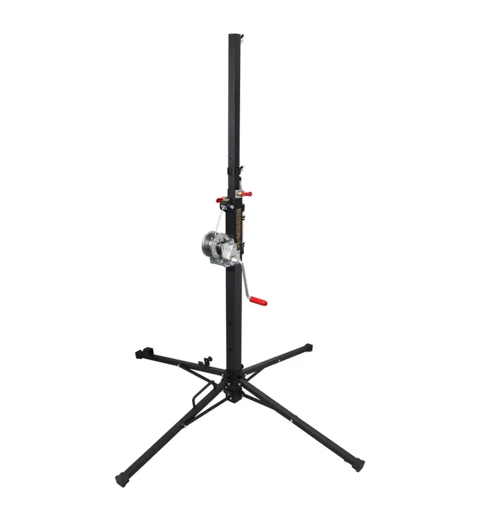The Fantek T101 model telescopic lifting tower is a tower designed to lift loads vertically while allowing easy transport in a minimum space. It is composed of three extensible steel profiles elevated by a high-resistance steel cable guided by grooved pulleys with SELOIL bronze bearings. Fixing of the tower section at the working height with an automatic steel safety pin. Legs with non-slip rubber pads. The entire system is operated by a manually operated winch. Fantek ATC-MOB Universal truss support for all models of top-loading towers. Allows truss to be anchored to the tower.