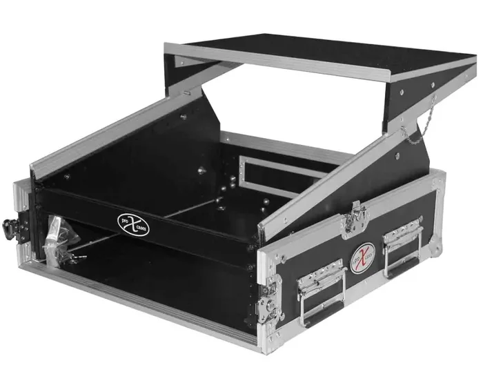This heavy-duty ProX professional combo rack is 20″ deep and features 2U front loading and 10U top loading rails for convenient security for a wide variety of pro DJ mixers. Other design highlights include a large swinging rear door (for easy wiring) with a beveled cable hole for permanent or semi-permanent installation. It also includes two handles on either side of the case for convenient transportation.