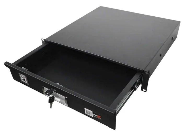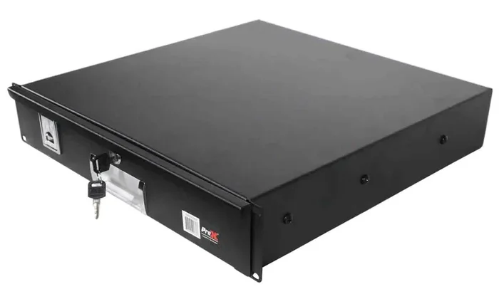 The ProX T-2RD-18 is a 2U Space Heavy-Duty Rack Drawer 18″ Deep is a handy, small storage unit that fits all USA standard 19-inch-wide rack mounts. Heavy Duty all-metal construction. The 19″ wide Rackmount Drawer, 16-1/8″ useable width, transforms any standard rack case with a convenient, secure storage unit that can hold a wide variety of Pro DJ and audio equipment: accessories, adapters, cables, iPods, etc. Features secure lock with 2 keys included and draw top handle.