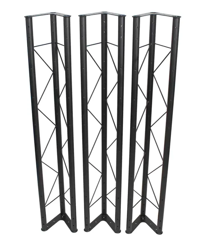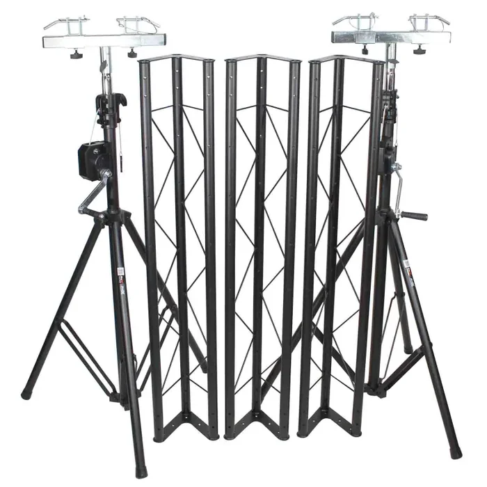 The Prox T-LS35VC is a Triangle Truss System for DJ Production Crank Up Lighting 14.25-inch wide 200lbs Capacity. Truss sections are 6″ in overall width maximum safe height is 10ft with a weight of 99lbs. This medium-duty truss lighting stands package includes two High-quality cranks up stands & three 57″ triangle truss sections that create a 5ft, 10ft, or 15ft span. The crank stands can safely extend to heights of 10ft. The “open side” design of this trussing allows the segments to be stacked in a compact manner for transportation.
