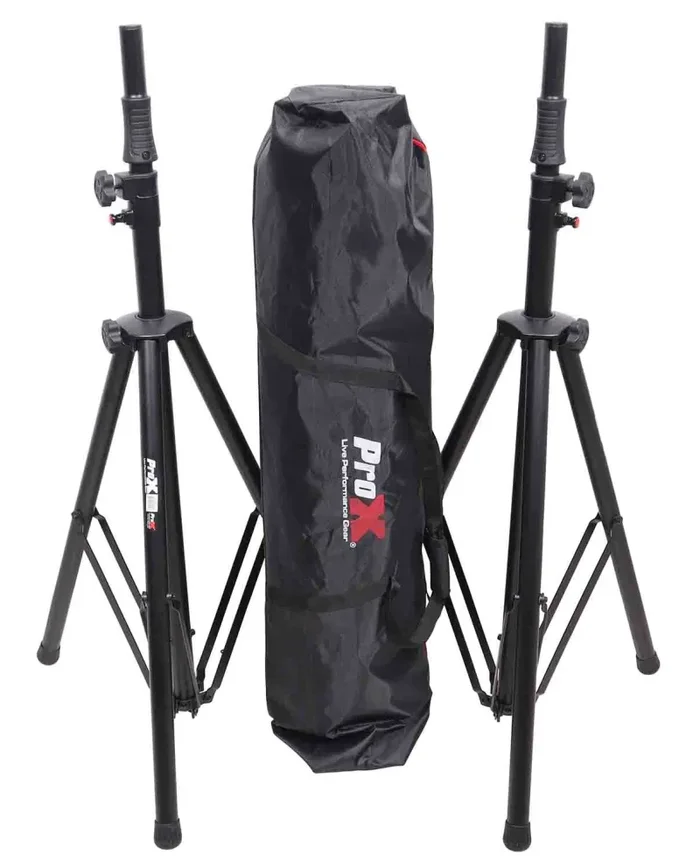 The ProX T-SS82P is a Set of 2 Pro Air Speaker stand in Black with Carry Bags.