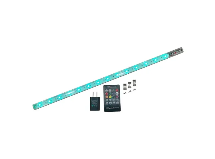 The ProX X-GLOLITE20 is a RGB Accent Aluminum Body LED Light Fixture USB Power RF Wireless Remote – 20 Inch has 13 bright SMD 5050 LEDs providing 8 colors via the included Wireless Remote Control. It also has four Sound Active modes as well. The X-GLOLITE20 is housed in an aluminum body for durability and safety, USB powered and also includes an AC Wall Adapter as well. It is truly plug and play. Remote uses CR2025 3V Battery, the RF Remote provides 8 colors to choose from: Two “Color Jump” and “Fade” modes and four sound-activated modes plus Dimming/Brightness controls and On/Off Button.