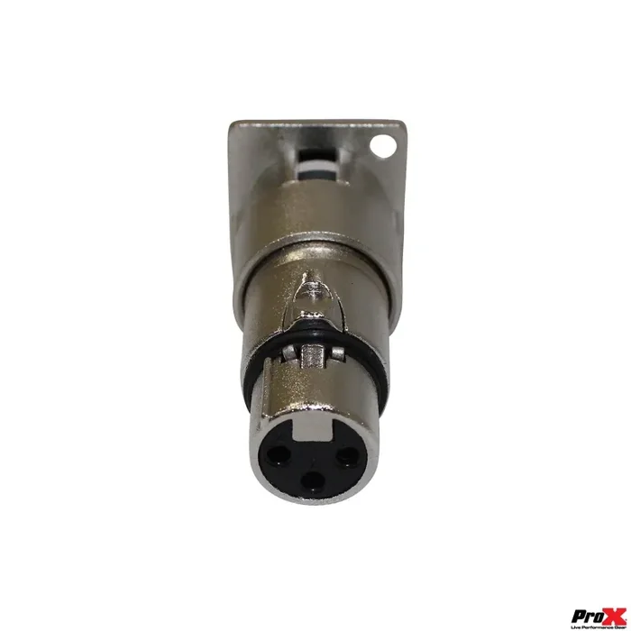 The ProX XC-3MDF XLR Male to Female Feedthrough Adapter for Panel Mount from ProX is designed specifically for the kinds of wall panels often utilized in mobile gear and on stage. It features a zinc diecast chassis and a steel-element latch-locking device. This adapter offers a 3-pin XLR male on the panel side and a 3-pin XLR female on the backside.
