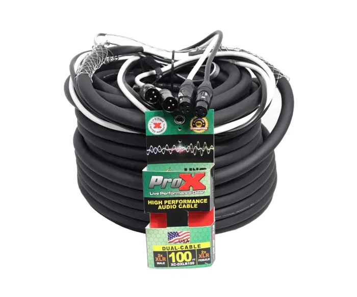 The ProX XC-DXLR100, Dual XLR-M to Dual XLR-F High Performance Audio Cable – 100 Ft is made to last you an entire lifetime. Each cable is made with high-quality materials and delivers a clear signal and connection each time. These cables are made by professionals for professionals like you. Each cable is built for High Performance and to withstand heavy everyday use.