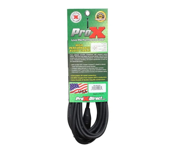 The ProX XC-MIC25 is ideal for professional touring and live sound applications where a device with an XLR output needs to be connected to a device with an XLR input. 93% braided OFC Copper Compact shield to reduce noise and protect pure sound transfer. Compact cable diameter to decrease eddy currents. Bending & Twisting are no match for our high-performance tour-grade audio cables. They’re designed to provide years of dependable sound reproduction and outlast every other cable on the market! Complete Coil technology demands consistent weave tolerances to create precise accuracy and detailed clarity. This is the most important part of the design and greatly affects performance.
