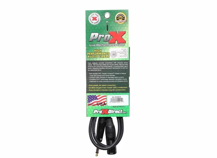 The Prox XC-PXM05 is an Unbalanced 1/4″ TS to XLR3-M High-Performance Audio Cable – 5 Feet is ideal for professional touring and live sound applications where a device with a male XLR output/input needs to be connected to a device with a 1/4″ TS output/input. 20AWG Oxygen-Free Copper (OFC) conductors for maximum signal transfer. ProX cables are built with uncompromised quality with excellent performance at each connection – Instrument cables, Speaker cables, RCA cables, DMX cables, Power cables, and more. Our cables are made for professionals, by professionals.
