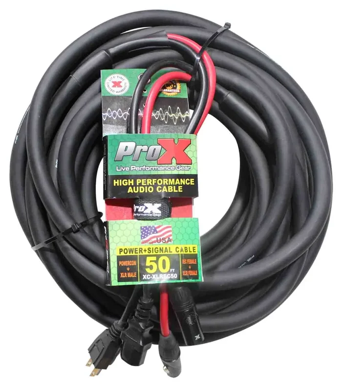 ProX XC-XLREC50 Power Cord and Audio Cable IEC Female to NEMA 15P & Balanced XLR-M to XLRF – 50 Feet