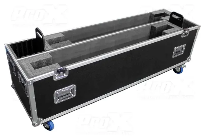 The ProX XS-LCD7080WX2 is designed to protect and transport Two 70″ to 80″ LED-LCD-Plasma TV/Monitors and is constructed with our rugged signature 3/8″ Gig-Ready Series Plywood, durable rubber wheels, reinforced steel ball corners, as well as recessed steel padded handles and latches.