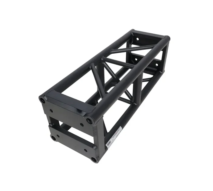 The ProX XT-BT1202BLK 12 Inch Black Bolted Professional Box Truss Segment is designed and engineered for many applications like stage lighting, concerts, Ninja Obstacle Course type construction, and similar uses. Setting ourselves apart from other box truss manufacturers BoltX has an innovative end plate designed and manufactured with heavy-duty aluminum material, welded on both sides, and our exclusive circular rings at each corner of the truss to reduce or eliminate damage to the main chord ends. Since box trussing is often dropped or is dragged along concrete floors, this design will substantially lessen the need for expensive repairs to the tubes from mishandling of the truss sections. Our outstanding quality control and manufacturing techniques assure excellent fitment at every connection to expedite your setups.